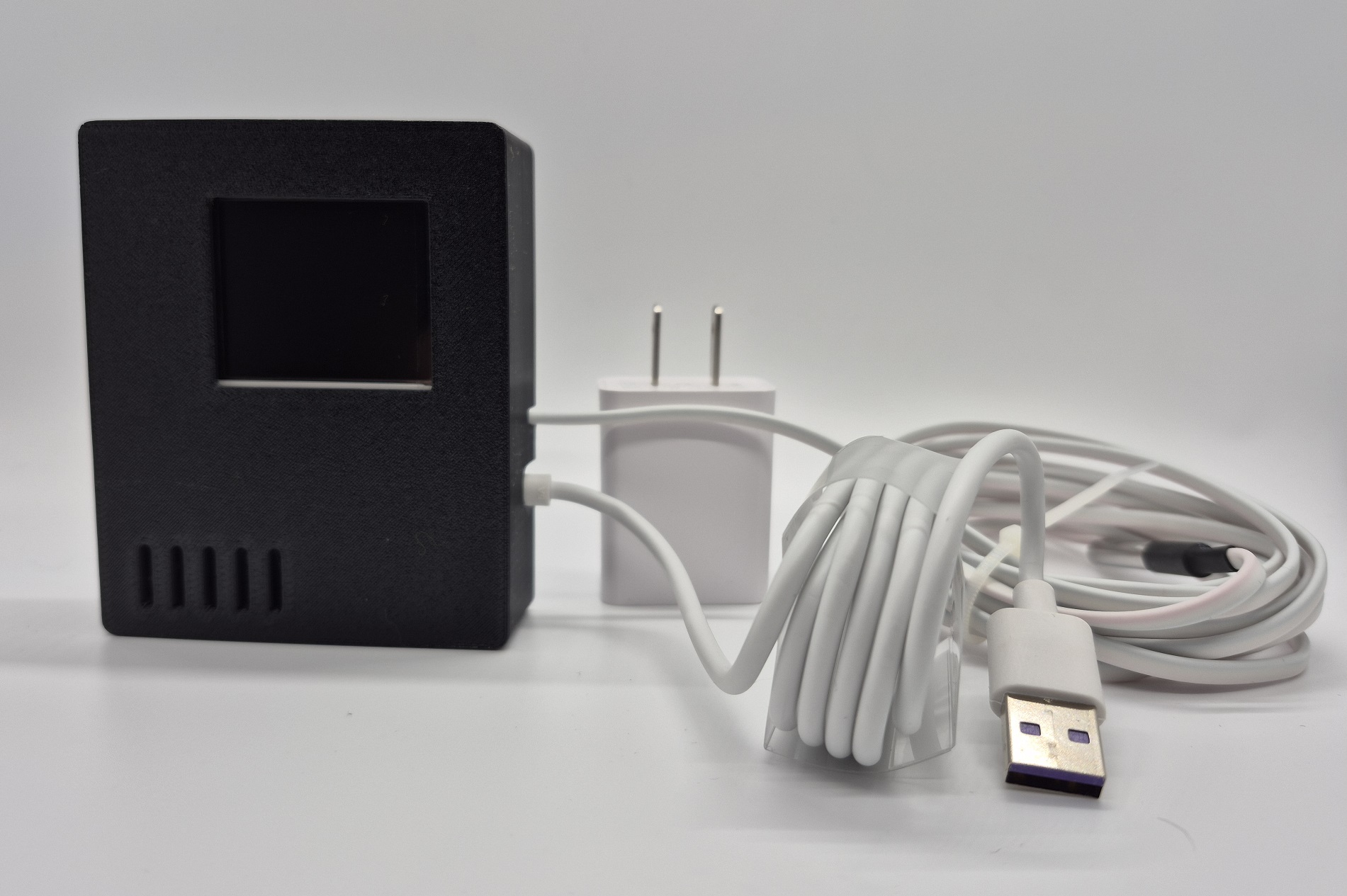 All units are powered via regular outlet. The default LCD option is the display with blue background light. However, if blue light is harmful for your use case (e.g. for agricultural farms, blue light can be harmful for plants), you may choose LCD with green background light (no price difference).